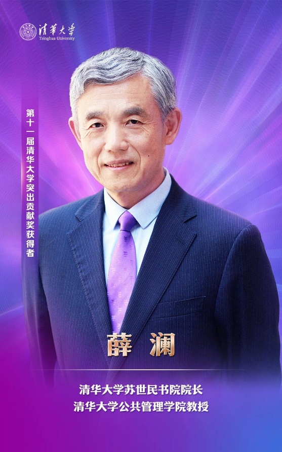 薛澜,国家哲学社会科学一级教授、清华大学文科资深教授,我国公共管理学科领军学者。1996年结束在美从教归国,此后在清华执教近三十载,曾获复旦管理学奖、全国创新争先奖章等。兼任国务院参事、国务院公共管理学学科评议组联合召集人、联合国公共管理专家委员会委员,曾任全国MPA教指委副主任、中国行政管理学会副会长等。他以坚定的政治信念、深厚的家国情怀和前瞻的学术视野,在构建清华公管学科体系、推进清华教育国际化、打造高端智库等方面贡献卓著。 在构建清华公共管理学科体系方面,2000-2018年间带领清华公管学院从无到有,跃居国内领先、国际知名,在多轮全国学科评估和MPA教育评估中连创佳绩;引领构建中国公共管理学自主知识体系,主编《中国大百科全书-公共管理学卷》;在国内领建公共政策、应急管理、全球治理等二级学科方向,为中国公管学科发展作出清华贡献。 在教育国际化方面,2007年推动设立国内首个国际发展硕士项目,开创中国公管教育国际化之先河;2018年起担任苏世民书院院长,锐意创新,推动建立 “三维立体”人才培养模式,努力将书院打造成为清华培养未来全球领袖的摇篮。 推动清华大学政策研究与智库建设,领建多个校级高端智库。带领团队建言咨政,服务国家重大战略,在科技政策、应急管理、人工智能治理等领域做出了重大政策贡献,拓展了清华大学的影响力;三次为中央政治局集体学习讲解,以学术智识深度参与国家重大决策。 “清华大学突出贡献奖”于2004年设立,是清华大学对在人才培养和学校发展中作出突出贡献者的特别奖励。该奖每两年评选一次,每次不超过3名。此前,已有21位老师获此殊荣。