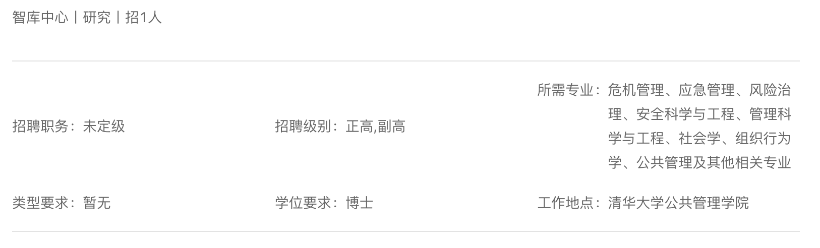 (1)具有风险治理、危机管理、应急管理、公共管理等相关专业领域博士学位或同等学力,副高级或以上职称或同等级职称或职务经历。有一定实践政策研究经验。